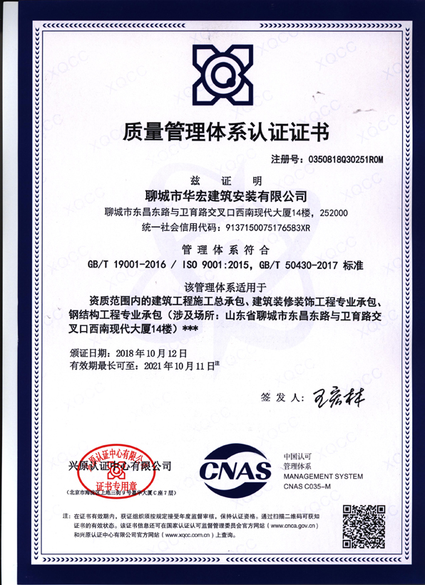 聊城市華宏建筑安裝有限公司成立于2002年5月,公司自2002年成立以來,不斷發(fā)揚 “敬業(yè)修身 打造精品 開拓創(chuàng)新 弄潮勇進”的創(chuàng)業(yè)精神,始終遵循“以質(zhì)量求生存、靠精品創(chuàng)品牌、憑信譽贏市場”的宗旨,認真奉行“科學 高效 一流”的質(zhì)量方針
